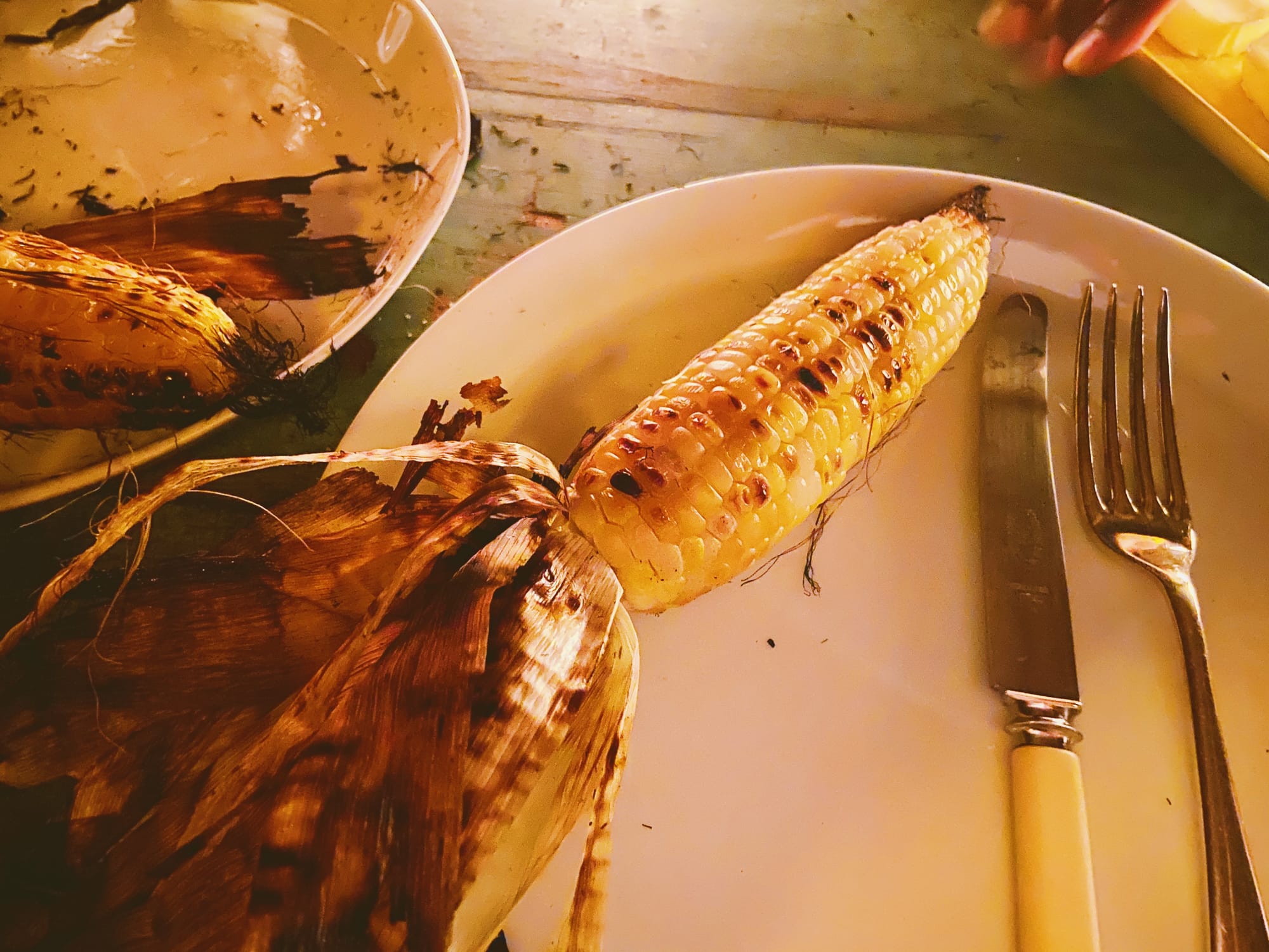 While the tub was filling, I went back to the kitchen wearing only a towel and tore up some stale bread that wasn’t going to survive another day so I could turn them into croutons with the chicken fat. If you’re wondering how long it takes to fill up a tub, well, it’s about how long it takes to tear up one loaf of very stale bread for croutons. I told my friend Chris that I was taking a bath and that I was putting the corn on the grill, and if he could, rotate it in approximately eight minutes and then eight minutes after that? He said yes, he would! Delegation is also an essential part of optimizing.