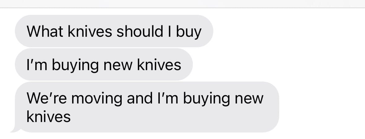 1. A sharp knife. This is generally “a chef’s knife,” though I have a few other favorites I keep around for specific tasks, or, because I like the way they look. Weirdly, I’ve been asked a lot lately what knives someone should have, and I’ve spent a lot of time thinking about it. So much so that it prompted me to buy all new knives (it had been about 8 years since I had purchased a new knife– it was time). Later this week, I’ll share what I bought and why I think they are the knives you need.