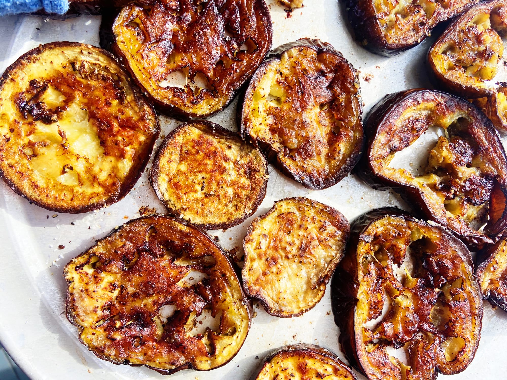 It’s called “A Little” because it does basically taste like eggplant parmesan (cheesy, salty, saucy) but lighter, fresher, tangier, crunchier. It’s also, literally, a small eggplant parm (serves 2).