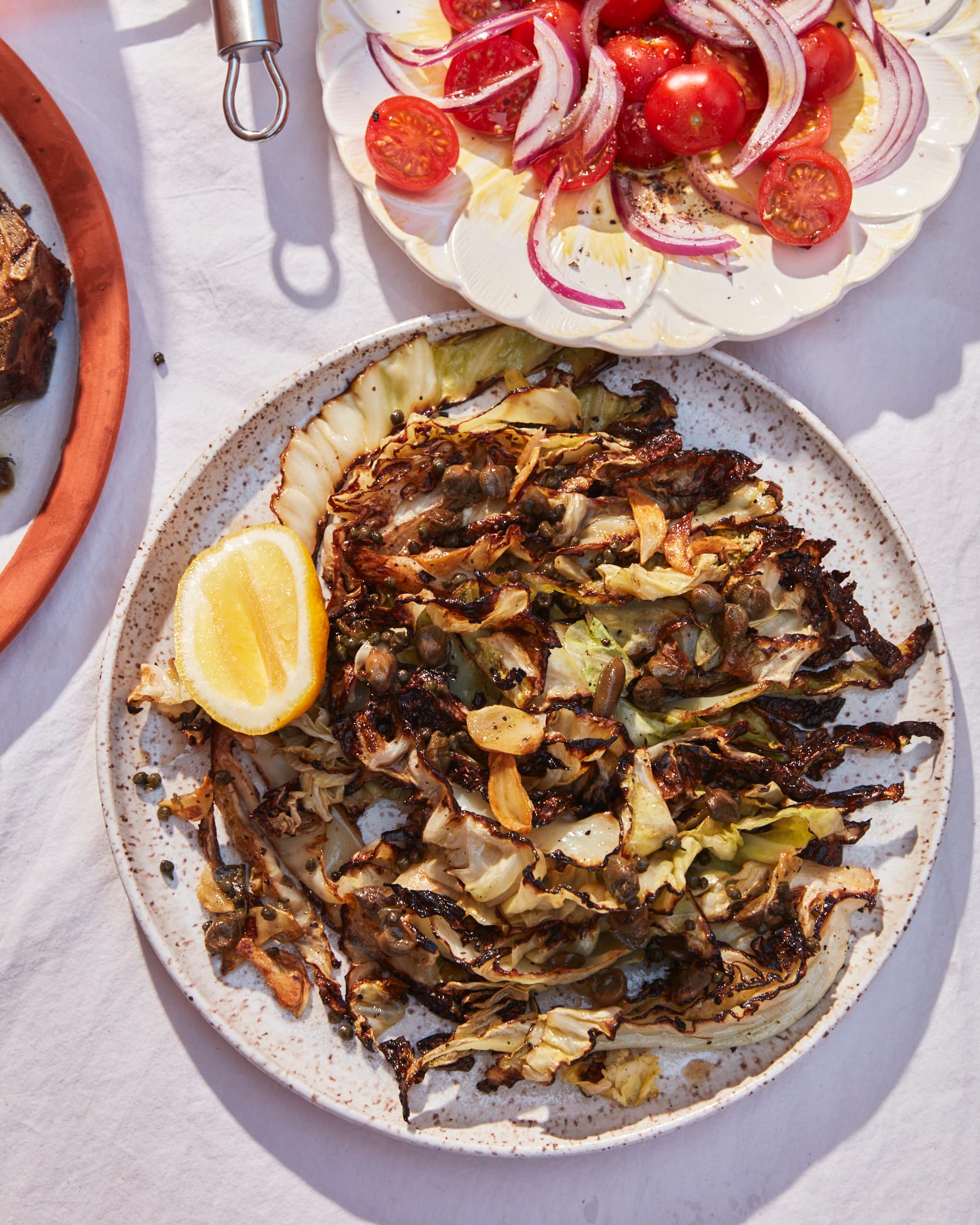 This recipe is simple, really existing to make the case that high quality meat, seasoned sparingly with salt and pepper is a true luxury. Sure, after slicing it’s finished with some capers crisped up in browned butter alongside toasted slivers of garlic, maybe a little lemon, but still—simple. Since it’s best practice to waste not, want not, the rendered pork fat is put to good use, searing wedges of cabbage to get caramelized and tender (cabbage is SO GOOD), but fennel, broccoli, turnips or handfuls of hearty broccoli rabe or kale would also work if you’re not yet convinced cabbage is the second coming.
