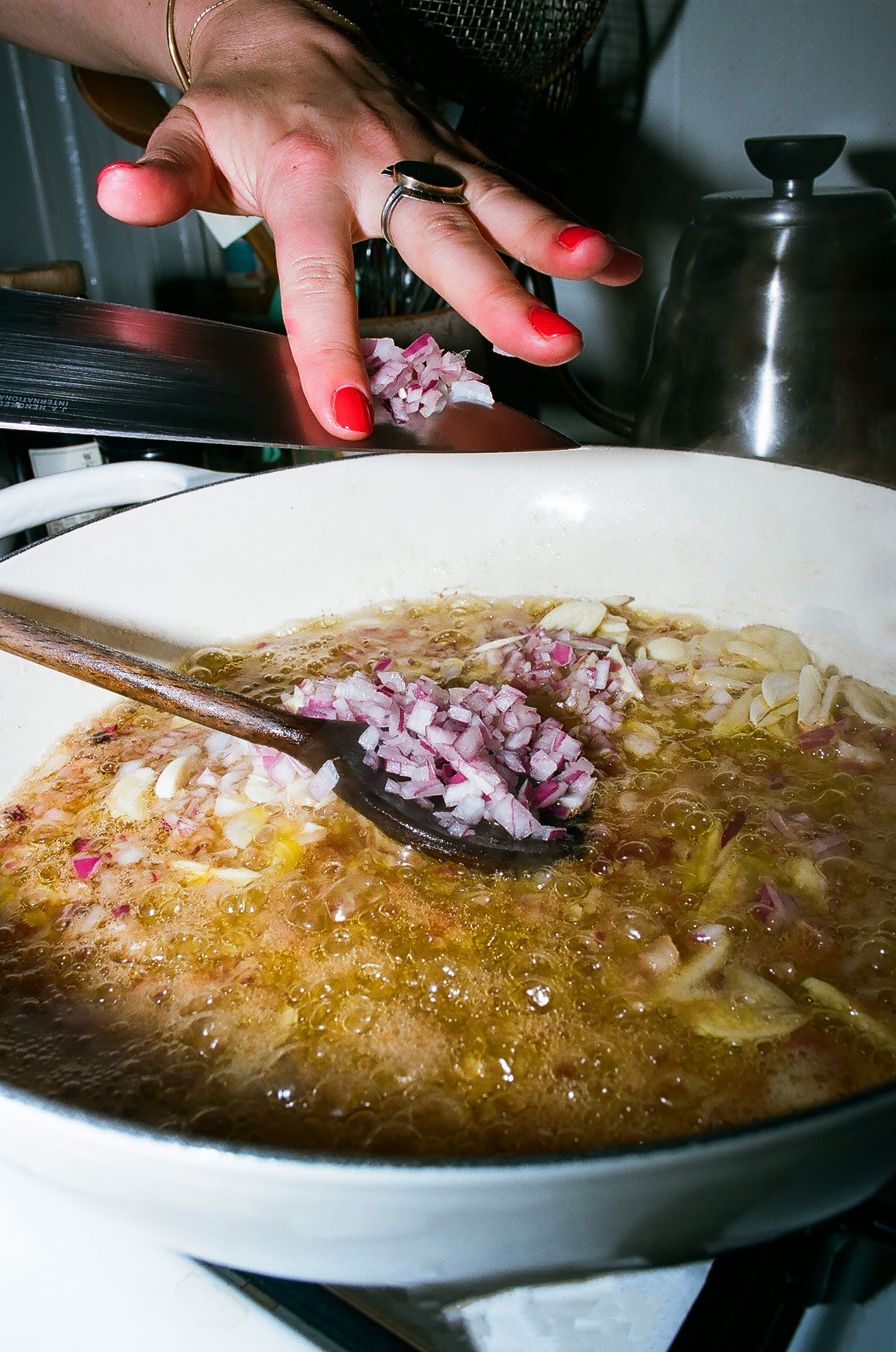 2. Add onion and garlic and watch the bits swim in the fat as everything softens and browns. This isn’t the fun part yet, but it will smell very very good, and I guess that’s fun in its own way.