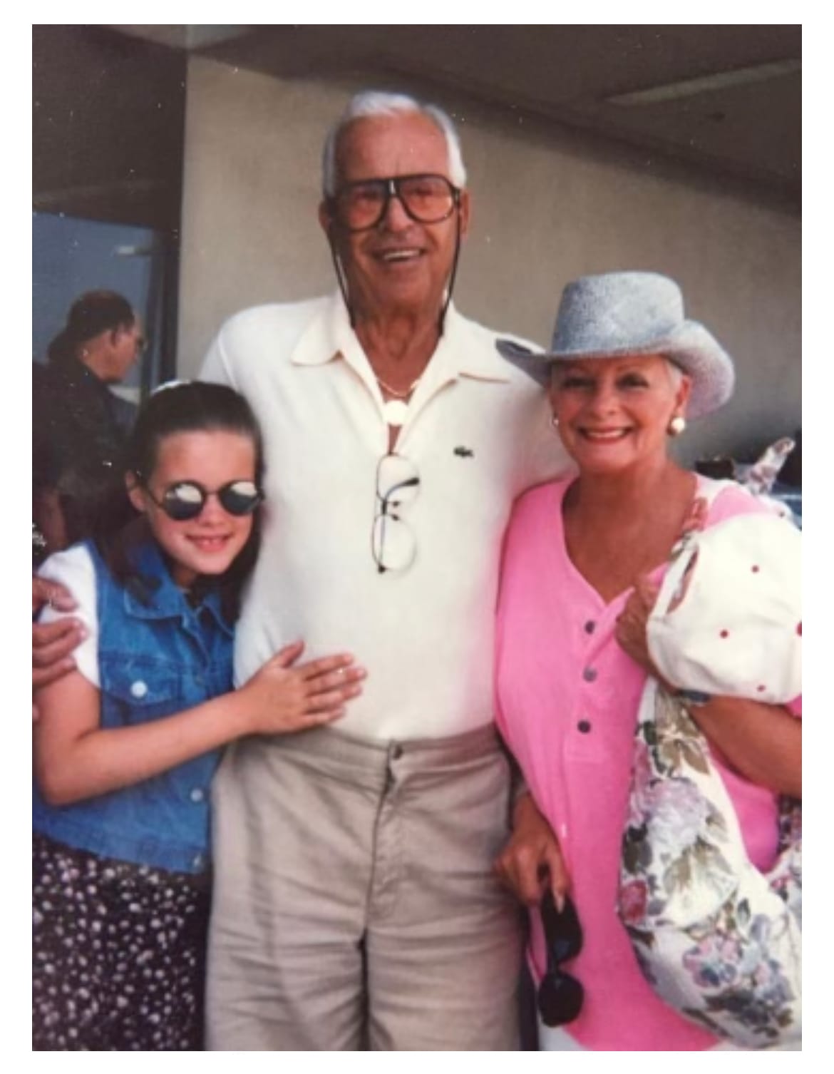 delia’s loving tween poses with grandpa and grandma circa 1995